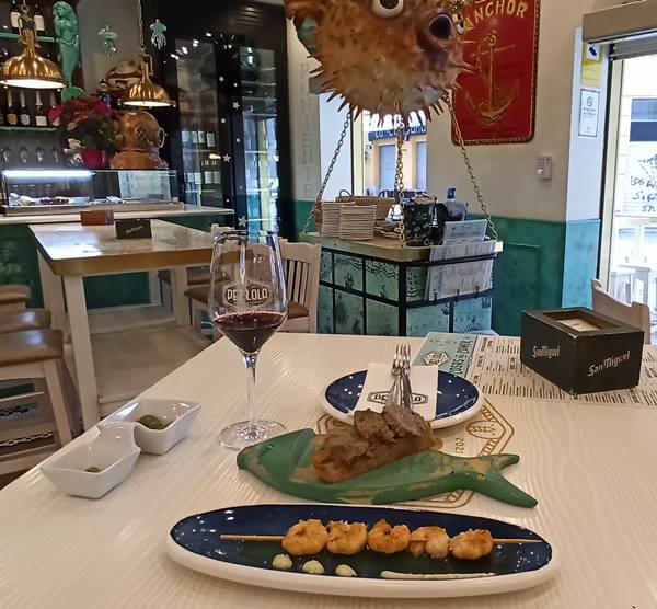 Menu: seafood, meat, tapas-pinchos, soups, wide range of local wines.
