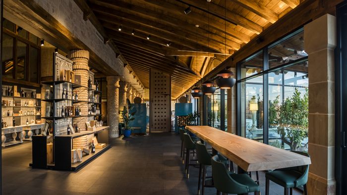The wine shop selling the whole production is located nearby the restaurant between vineyards Viñedos de Páganos.