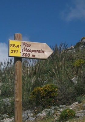 Follow the route PR-A 271 called Sendero Puerto Martínez-Alcaparaín gently up between pines taking direction east-north for any 1 KM. Then the path turns sharply left and it´s getting bit steeper.